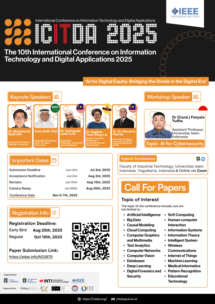 Dr Syaheerah Lebai Lutfi as a keynote for the International Conference on Information Technology and Digital Applications (ICITDA 2025), Yogyakarta, Indonesia